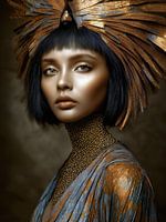 Portret van een vrouw in Egyptische stijl met blauw en goud accenten