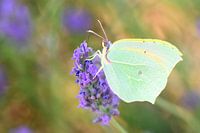 Cleopatra vlinder (Gonepteryx cleopatra) zittend op bloeiende lavendel in de Provence in Frankrijk tijdens een zonnige zomerdag.