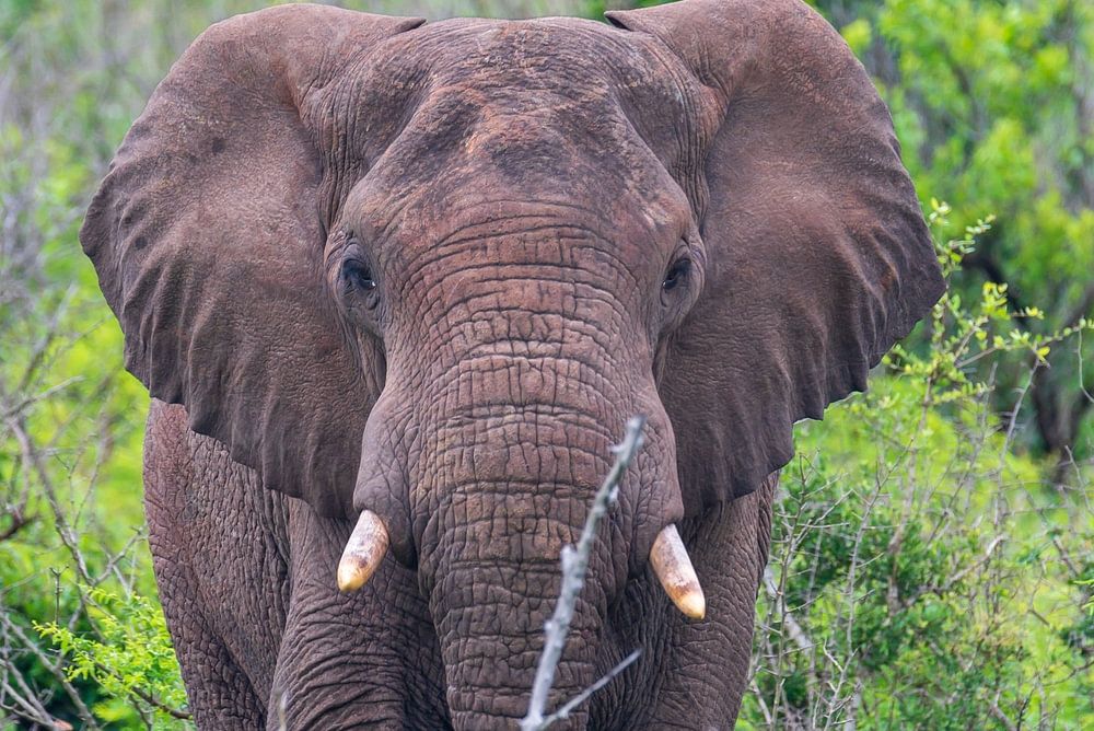 Plotseling oog in oog met de indrukwekkende olifanten bul. Zijn ogen, diep doordringend en doordrenkt met eeuwenoude wijsheid, ontmoeten de jouwe in een moment van ongefilterde wildernis.