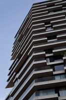 Close-up Architectuur in Amsterdam met een mooie blauwe lucht.