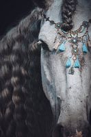 Koop dit portret Close up Fine art portret paard blauwe sieraden van Shirley van Lieshout op canvas, aluminium dibond, (ingelijste) fotoprint, behang en ArtFrame, op maat geprint in Fine-Art kwaliteit.