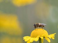 Nog een macrofoto kunnen maken van de bezige bij op de gele bloemen.