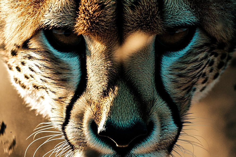 Een krachtige close-up van een cheeta in volle sprint. Dit ontwerp brengt de essentie van snelheid en kracht van een van de meest iconische roofdieren ter wereld tot leven. Met scherpe details en een dynamische compositie is dit beeld perfect voor liefhebbers van wilde dieren en moderne kunst. De intense focus van de cheeta, gecombineerd met de dramatische stofwolken, geeft een gevoel van beweging en energie dat elke ruimte een unieke uitstraling geeft. Dit ontwerp past perfect in een moderne of minimalistische inrichting en trekt gegarandeerd de aandacht van elke toeschouwer.