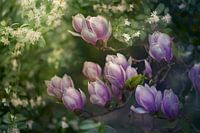 Over ‘Close-up foto van magnolia’s, Schilderachtig, pastel, lila, roze en wit’ van Joriali Fine Art