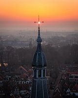 Op een frisse ochtend in maart 2025 baadt de toren van de Grote of Stephanuskerk in Hasselt in het zachte licht van de opkomende zon. De eerste stralen breken door de ochtendnevel en hullen het historische stadsgezicht in warme tinten van goud en oranje. De karakteristieke gotische toren, een herkenbaar baken in het landschap, steekt statig af tegen de kleurrijke ochtendhemel en ademt de rust en historie van dit oude Hanzestadje.