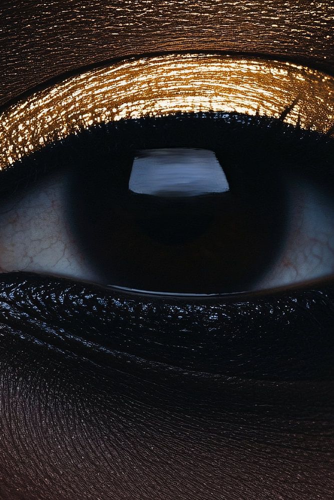 Deze opvallende close-up foto vangt de betoverende blik van een oog, omlijst door een opvallende metallic gouden oogschaduw en diepzwarte eyeliner. Het contrast tussen het glanzende goud en het donker omlijnde oog zorgt voor een luxueuze en mysterieuze uitstraling. De intense focus en de fijn gedetailleerde textuur benadrukken de schoonheid en kunstzinnigheid van moderne make-up. Perfect als statement piece in elke ruimte waar je een vleugje verfijning en glamour wilt toevoegen. Dit werk spreekt liefhebbers van fashion, schoonheid en hyperrealistische kunst aan en is ideaal voor een slaapkamer of kantoorruimte.