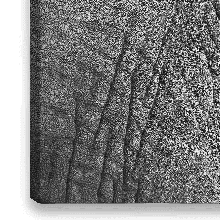 Close-up van het oog van een Afrikaanse olifant. Door het gebruik van zwart wit komen alle details en contrasten in deze foto prachtig naar voren. De extreme tekening van de huid op het voorhoofd van deze olifant maakt dat je uren blijft kijken naar dit prachtige dier. Door het mooie verloop van scherptediepte lijkt het alsof de olifant…
