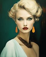 Close-up portret van een jonge vrouw met oranje accent. Kies zelf het formaat en materiaal bij deze blikvanger en maak het helemaal passend voor jouw interieur.