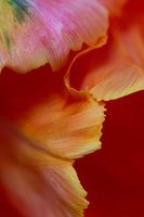 Een macro foto van bladeren van een bloem. De close up is van een kleine afstand genomen waardoor het een abstract beeld wordt. De bladeren hebben prachtige kleuren.