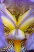 Een close up van deze iris laat de natuurlijke geometrische vormen van de natuur en de intense kleuren zien.