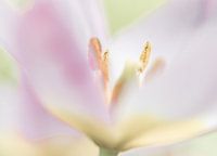 Macro opname van een tulp met selectieve focus in zachte pasteltinten.