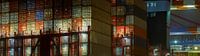 Deze afbeelding toont een gedetailleerde close-up van gestapelde containers op een vrachtschip, 's nachts verlicht door kunstlicht. De veelheid aan kleuren en structuren wekt de indruk van precisie en organisatie in de wereldwijde logistiek. De nachtverlichting creëert een fascinerende sfeer die de industriële esthetiek benadrukt. Dit beeld is ideaal voor thema's als handel, transport, scheepvaart en de wereldeconomie. Het belichaamt efficiëntie, internationaliteit en de moderne processen achter de wereldwijde verplaatsing van goederen en is ideaal voor commerciële en redactionele toepassingen in de logistiek en transportindustrie.