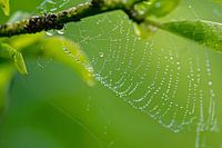Koop de foto Close-up van dauw op spinnenweb met bladeren van Imperial Art House als print op canvas, aluminium dibond, (ingelijste) fotoprint, behang en ArtFrame. Voor jou op maat geprint in Fine-Art kwaliteit.