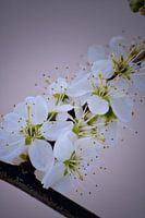 De sleedoorn is een vroegbloeiende struik met kleine witte bloempjes met een groengeel hart. Van dichtbij zie je de delicate bloemblaadjes in een puur wit.