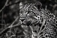 Dit prachtige zwart-wit kunstwerk toont de intense schoonheid van een luipaard in zijn natuurlijke omgeving. Met zijn gedetailleerde vachtpatronen en scherpe ogen, trekt het beeld direct de aandacht en straalt het kracht en rust uit. De subtiele schakeringen van zwart en wit benadrukken de elegantie en de wilde kracht van dit majestueuze dier. Het is een perfecte toevoeging aan elk interieur waar een gevoel van avontuur, natuur of serene kracht gewenst is. Of je nu een natuurliefhebber bent of gewoon een elegant kunststuk zoekt om je ruimte te verfraaien, dit ontwerp biedt een tijdloze schoonheid die nooit verveelt. Een eyecatcher voor in de slaapkamer of eetkamer.