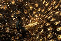 Over ‘Close-up van een pauw met een explosie aan gouden veren’ van Richards Fine Art