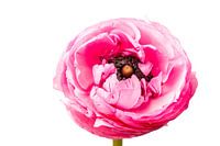 Een solo foto van een mooi bloeiende roze klaproos op een witte achtergrond. De foto is zeer geschikt voor fotobehang.