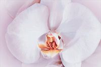 Close-up van een zacht roze orchidee met een goud tot koper kleurige kern. Deze afbeelding is bewerkt tot een digitaal olieschilderij.