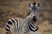 Deze indrukwekkende foto toont een zebra in zijn natuurlijke habitat. De prachtige zwart-witte strepen komen helder naar voren tegen de rustige achtergrond van het Afrikaanse landschap. De zebra kijkt direct de camera in, wat een intiem en bijna persoonlijk moment creëert tussen de kijker en het dier. Dit ontwerp is perfect voor liefhebbers van wilde dieren en natuur, en brengt een gevoel van sereniteit en elegantie in elke ruimte. Met zijn eenvoudige maar krachtige compositie is het een ideale keuze voor zowel moderne als minimalistische interieurs, zoals een slaapkamer of kantoor. Voeg een vleugje Afrikaanse savanne toe aan uw omgeving met dit tijdloze stuk.