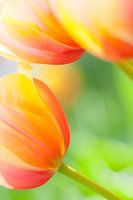 Close-up foto van prachtige kleurrijke tulpen in het voorjaar met een wazige achtergrond en zachte kleuren. Een heerlijke lente foto.
