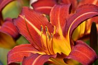 Wauw, wat een kleur heeft deze prachtige Lelie en is volop in de bloei. De meeldraden reiken boven de bloem uit.