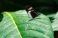 Close-up van een donkergekleurde vlinder in de botanische tuin van Quindío, Colombia.