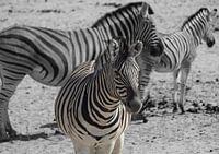 Over ‘Close-up van zebra's in Botswana, Afrika met een zwartwit achtergrond’ van Phillipson Photography