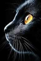 Een adembenemend ontwerp dat de kracht en elegantie van een zwarte kat perfect weergeeft. Deze close-up laat elk haartje, elke snorhaar en het hypnotiserende gouden oog prachtig tot leven komen. De diepe, donkere tinten van het kattenvacht creëren een indrukwekkend contrast met het levendige goud van het oog, waardoor de foto een mysterieuze en moderne uitstraling krijgt. Ideaal voor dierenliefhebbers of als stijlvolle toevoeging aan een moderne ruimte zoals een kantoor of slaapkamer. Het ontwerp straalt tegelijkertijd rust, kracht en een vleugje mysterie uit. Perfect om elke ruimte om te toveren in een inspirerende en unieke omgeving.
