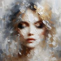 Betreed de wereld van verfijnde schoonheid met dit prachtige olieverfportret van een vrouw, waarin wit en goud harmonieus samenkomen om haar gracieuze uitstraling te accentueren. Deze creatie belichaamt tijdloze klasse en zal elke ruimte verrijken met een vleugje verfijning en allure. Laat je betoveren door haar charme en haal dit werk vandaag nog in huis.