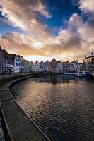 Een prachtige lucht bij zonsondergang boven de haven van Goes, terwijl de wind flink tekeer gaat.