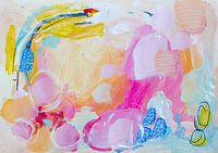 Een zoetgekleurd abstract schilderij dat je meeneemt in een dromerige fantasiewereld.