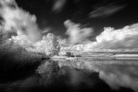 Een infrarood opname van een recreatieplas in Nieuwegein. Door de windstilte reflecteerde het water de prachtige wolkenlucht perfect.