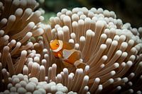 De clownvis, vaak bekend als de "Nemo" vis, is een van de meest geliefde en herkenbare bewoners van de koraalriffen rond Mabul Island in Maleisië. Met hun feloranje kleur en kenmerkende witte strepen zijn ze een waar genot om te zien voor duikers en snorkelaars. Clownvissen leven in symbiose met anemonen, waarbij ze bescherming zoeken in de tentakels van deze zeeanemonen. De anemonen bieden een veilige schuilplaats tegen roofdieren, terwijl de clownvissen op hun beurt helpen de anemonen te reinigen en te beschermen.