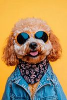 Met een stralende lach en een vleugje coolness zal deze Cockapoo in een stijlvolle zonnebril en een casual spijkerjasje je in verrukking brengen. Zijn pluizige, gouden vacht straalt warmte uit, terwijl de kleurrijke sjaal hem een vleugje chic geeft. Een fantastische metgezel die levensvreugde en speelsheid belichaamt!