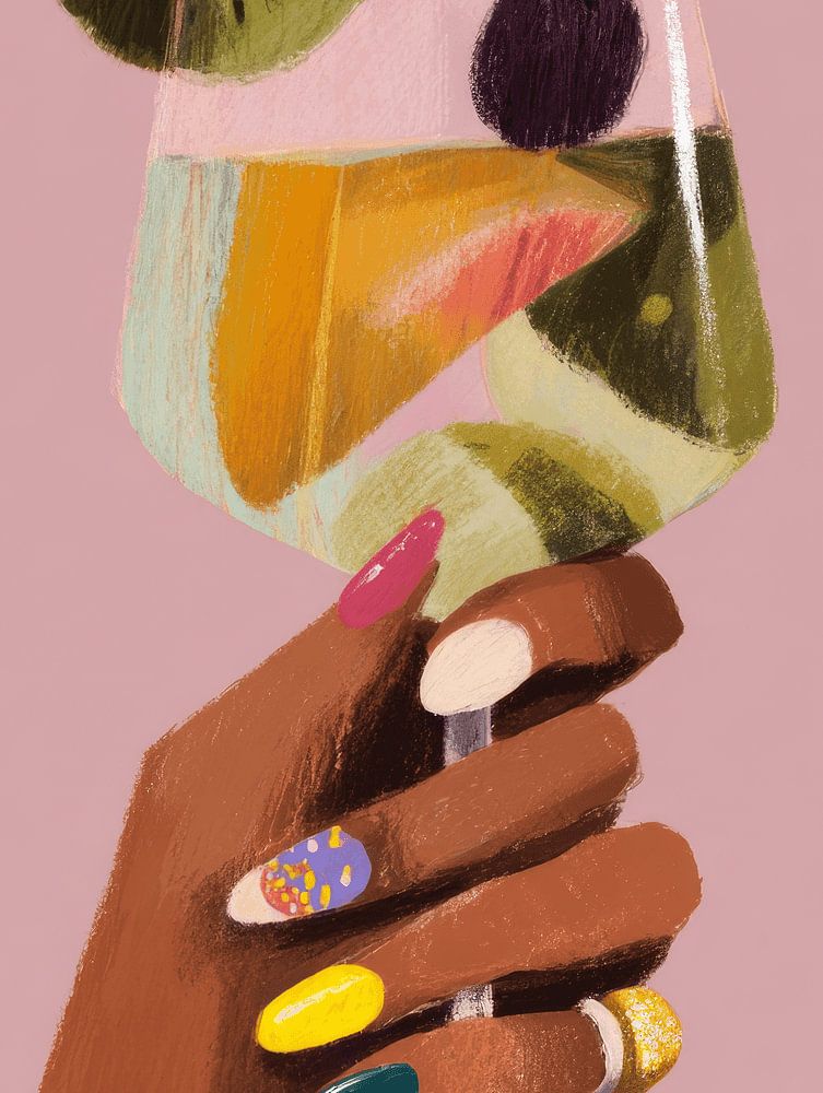 Cocktail Time, een frisse cocktail. Dit kunstwerk is pure dorstlessende vrolijkheid op doek. Met schijfjes fruit en knallende nagellak is dit geen gewoon drankje, maar een happy hour voor je muur. Perfect voor wie elke dag wel een beetje zomer, stijl en sparkle kan gebruiken. Cheers to that!