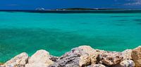 Mooi caribisch strand met helder blauw water. Coco-Cay privé strand, Bahamas.