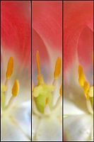 Macrophotographie de tulipe. Triptyque. Ajout de texture pour un effet "vintage".