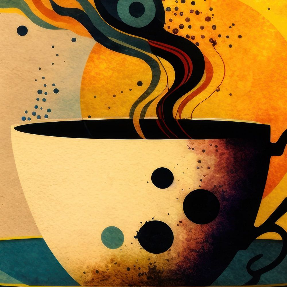 De kleine momenten van rust en inspiratie verbeeld in een speels en modern kunstwerk.