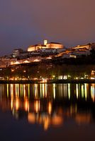 Coimbra Portugal The city with the Velha Universidade reflected in the Rio Mondego.