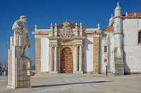 Het standbeeld van koning D. João III en de ingang van de oude bibliotheek zijn te vinden op de binnenplaats van de universiteit van Coimbra in Portugal. Coimbra vertegenwoordigt het intellectuele centrum van Portugal.