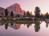 Zonsopgang Lago di Limides met uitzicht op de Col die Bos (Dolomieten / Italië)