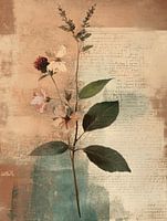 Collage Nieuw Landelijk, digitale collage. Een plant met bloem gecombineerd met pagina's uit een scrapbook. Een bijzondere blikvanger voor je interieur! Kies zelf het formaat en materiaal bij dit werk en maak het helemaal naar wens.