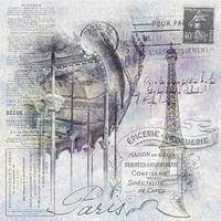 De Eiffeltoren in Parijs domineert met zijn 324 meter het stadsbeeld. Hier een typisch straatbeeld met een draaimolen. Stadsfotografie met decoratieve vormgeving in aquarel. Klassieke indruk uit Parijs.