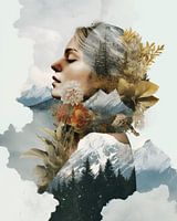 Collage met double exposure (meerdere beelden door elkaar, meervoudige belichting) met de titel Winter. Een portret gecombineerd met een winterslandschap. Een echte blikvanger!