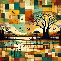 Collage/compositie van lagune cq vogelreservaat in Senegal van Lois Diallo