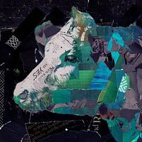 Collages van handgeschept papier en kranten werden digitaal gecombineerd met een portretfoto van een koe uit mijn buurt om deze funky koeiencollage te maken.