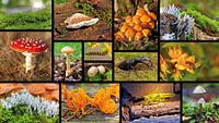 Een collage samengesteld uit macro foto's van met name paddenstoelen, maar ook een bijzonder beestje; het Vliegend Hert.