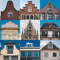 Verschillende soorten gevels zoals klokgevel, trapgevel, tuitgevel, halsgevel, lijstgevel, klokgevel in gouda. Mooie oude stad.