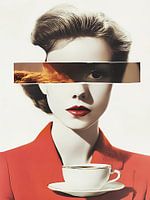 Vrouw met koffie collage kunst