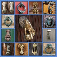 Variëteit aan antieke deurkloppers, samengevat in een collage van 13 stuks